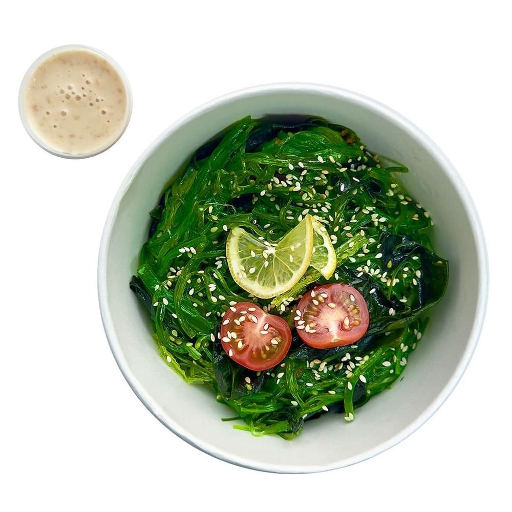 Водоросли вакаме и чукка создают сочную, слегка хрустящую текстуру, томаты черри добавляют лёгкую сладость, а ореховый соус делает вкус глубже и насыщеннее. Лёгкий, пикантный и очень аппетитный салат