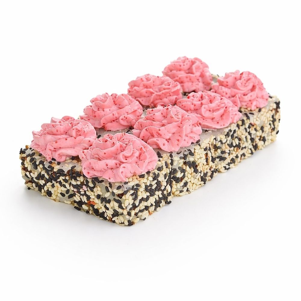 рис , сыр творожн , лосось , огурец , масаго ,черн - белый кунжут.